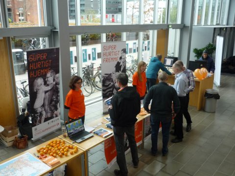 ”Den orange stribe er et hit” og ”Hvad sker der med Hyltebjerg Allé?”. Kommentarer, spørgsmål og gode ideer fløj over bordet, da Cykelsuperstierne deltog med en informationsstand ved Dansk Cyklistforbunds landsmøde og et ”Kør Grønt”- event på Glostrup Hospital.