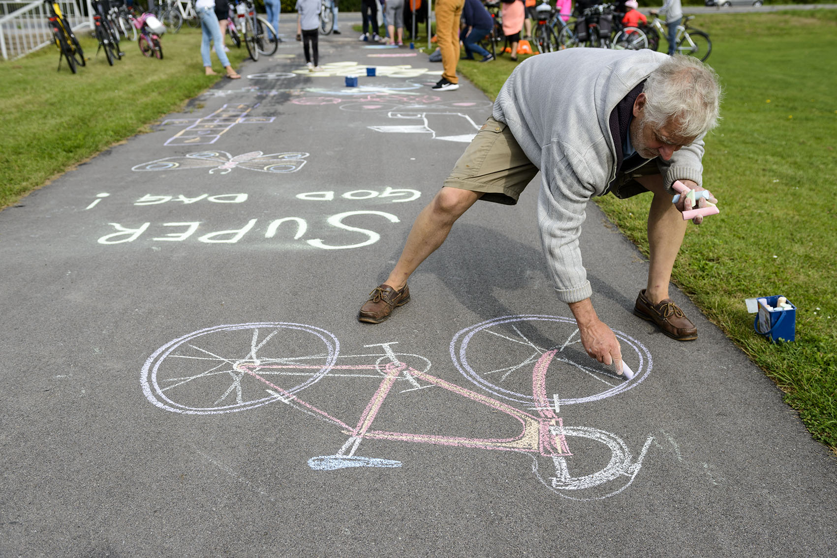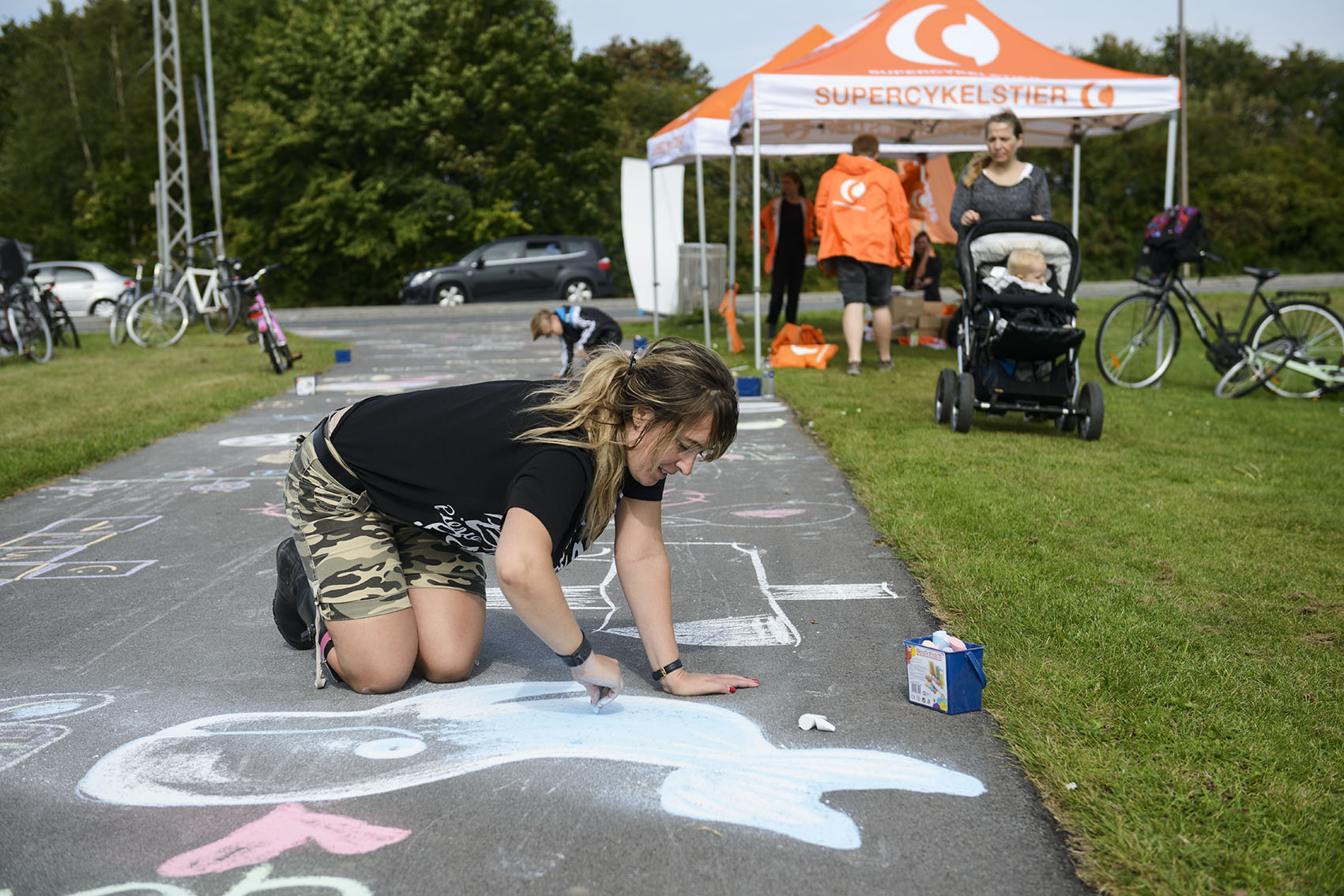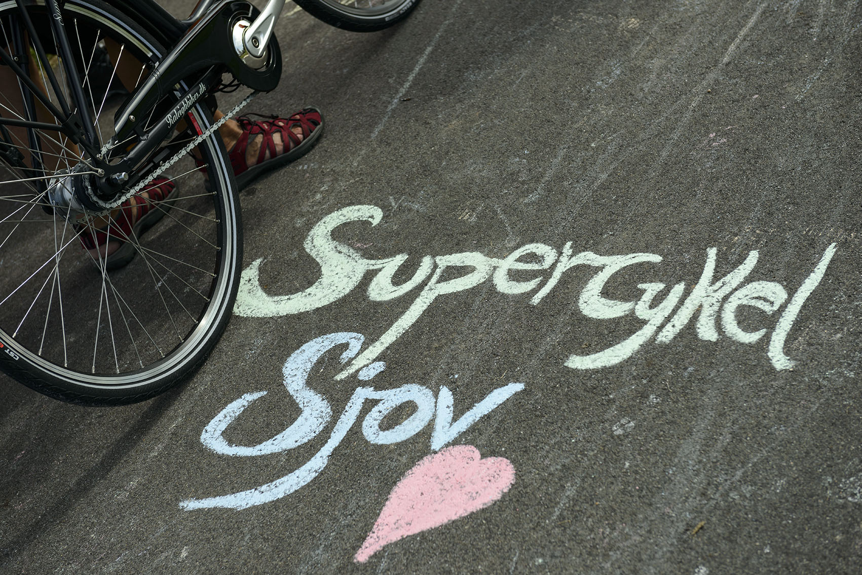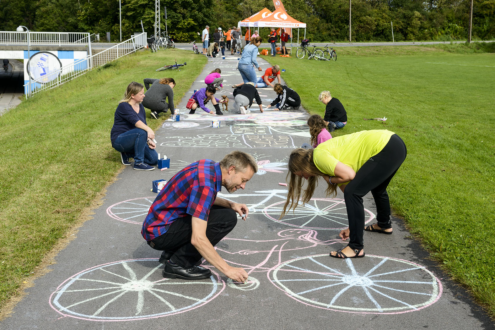 De fremmødte forvandlede cykelstien fra Ishøjruten ned til Arken til et kunstværk, da den nye Supercykelsti blev indviet. C806795