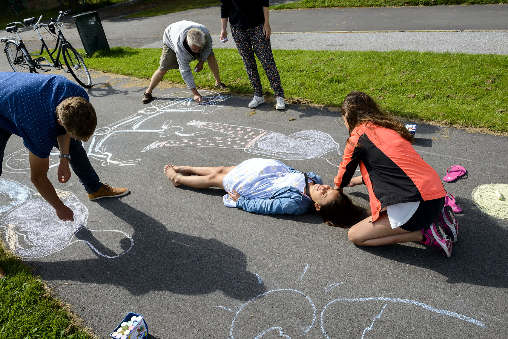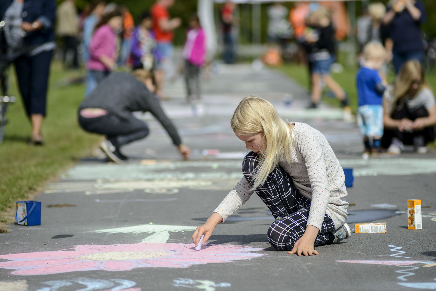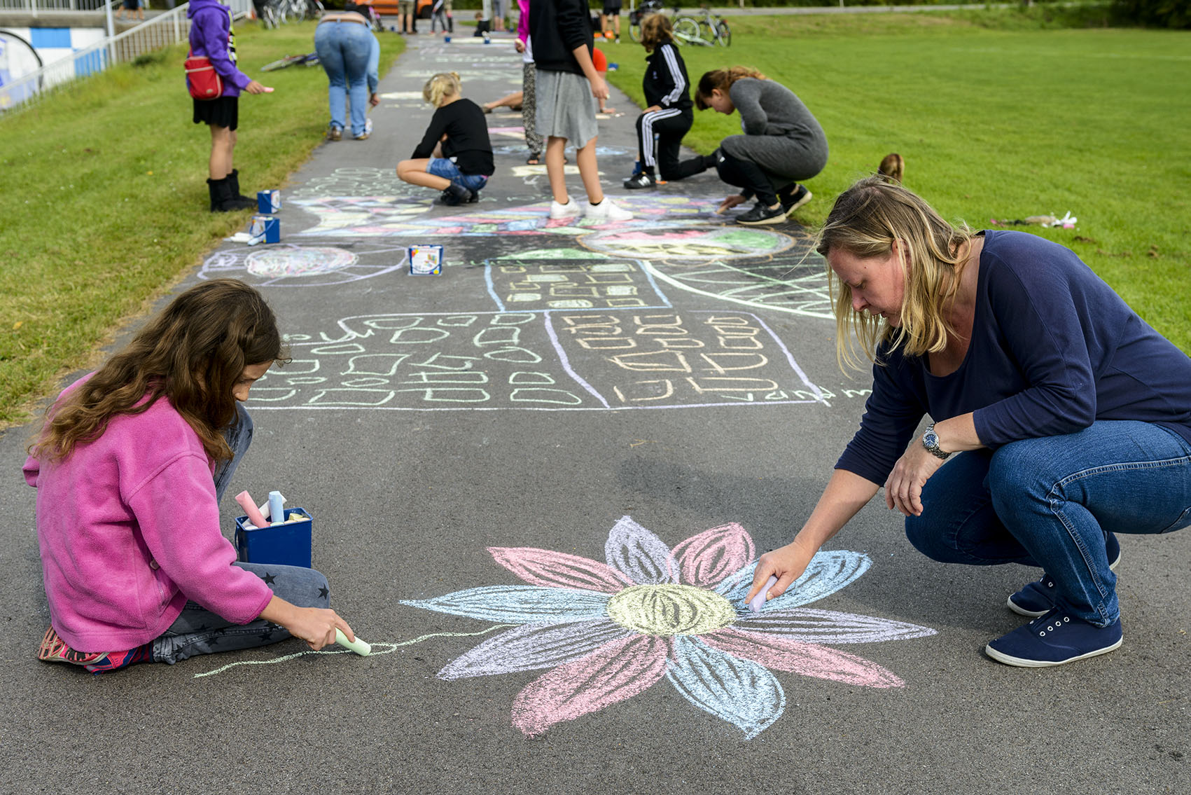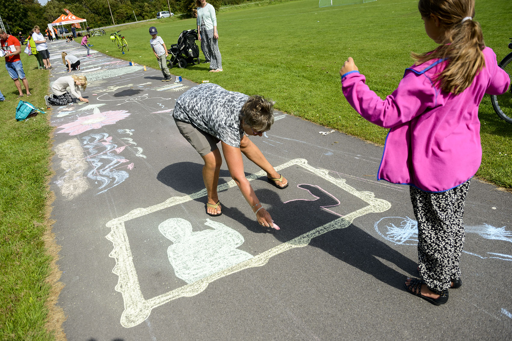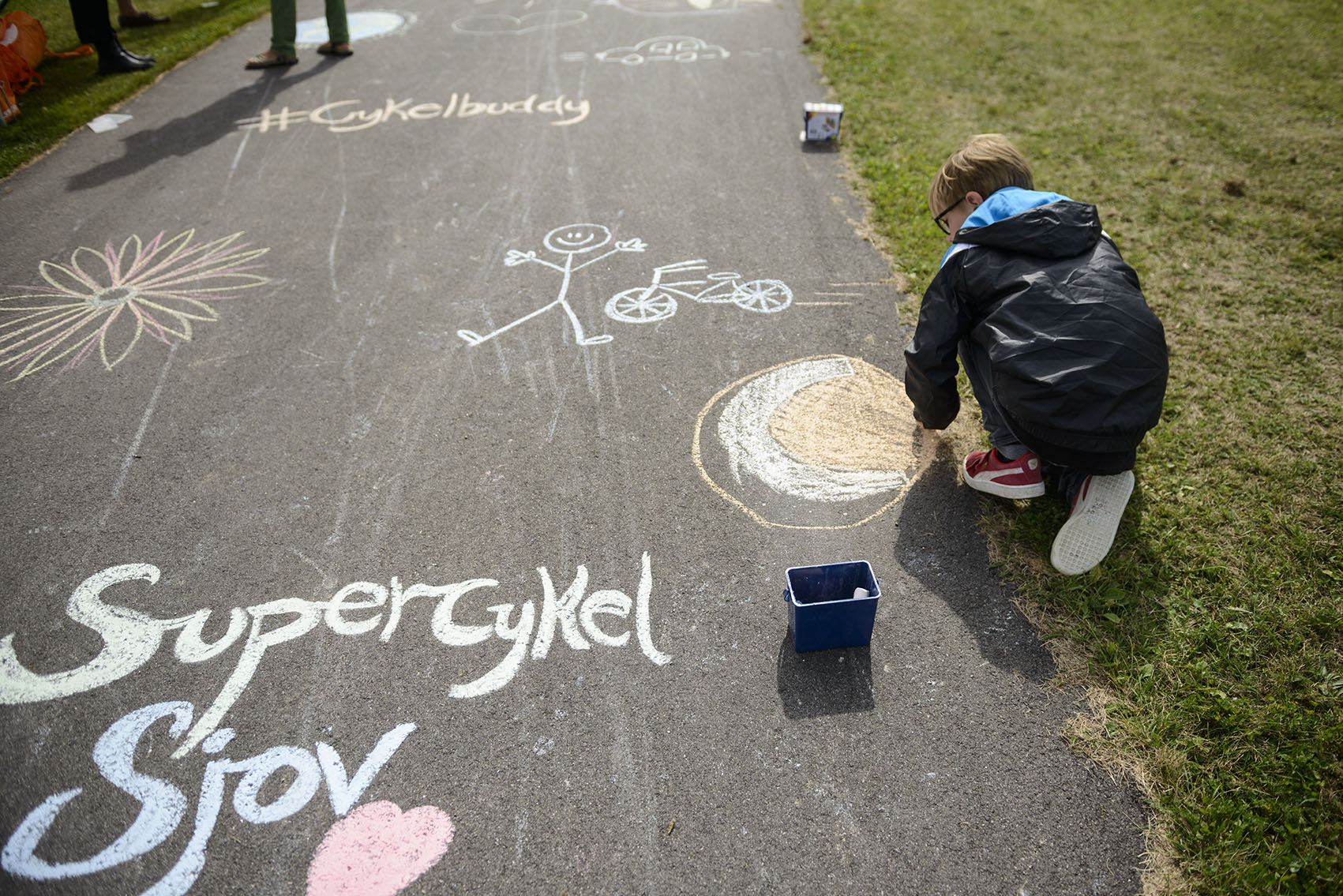De fremmødte forvandlede cykelstien fra Ishøjruten ned til Arken til et kunstværk, da den nye Supercykelsti blev indviet. C806795